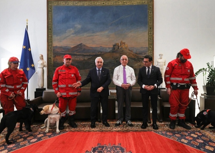 Donation of rescue dogs from the Parliament, King and Kira to the Red Cross