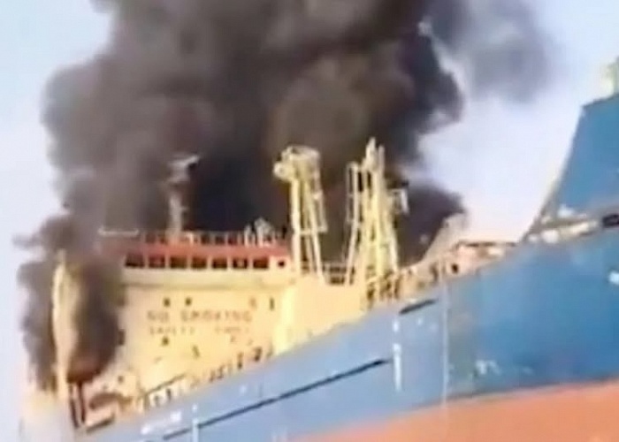 A Greek-owned ship is one of four that were hit near the Strait of Hormuz, at the mouth of the Persian Gulf, on Sunday.