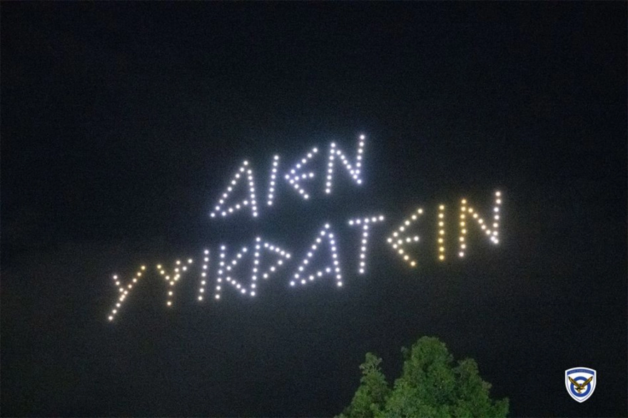 Spectators at the Hellenic Air Force Academy on Saturday night were treated to a spectacular drone show that lit up the sky with precision and symbolism.
