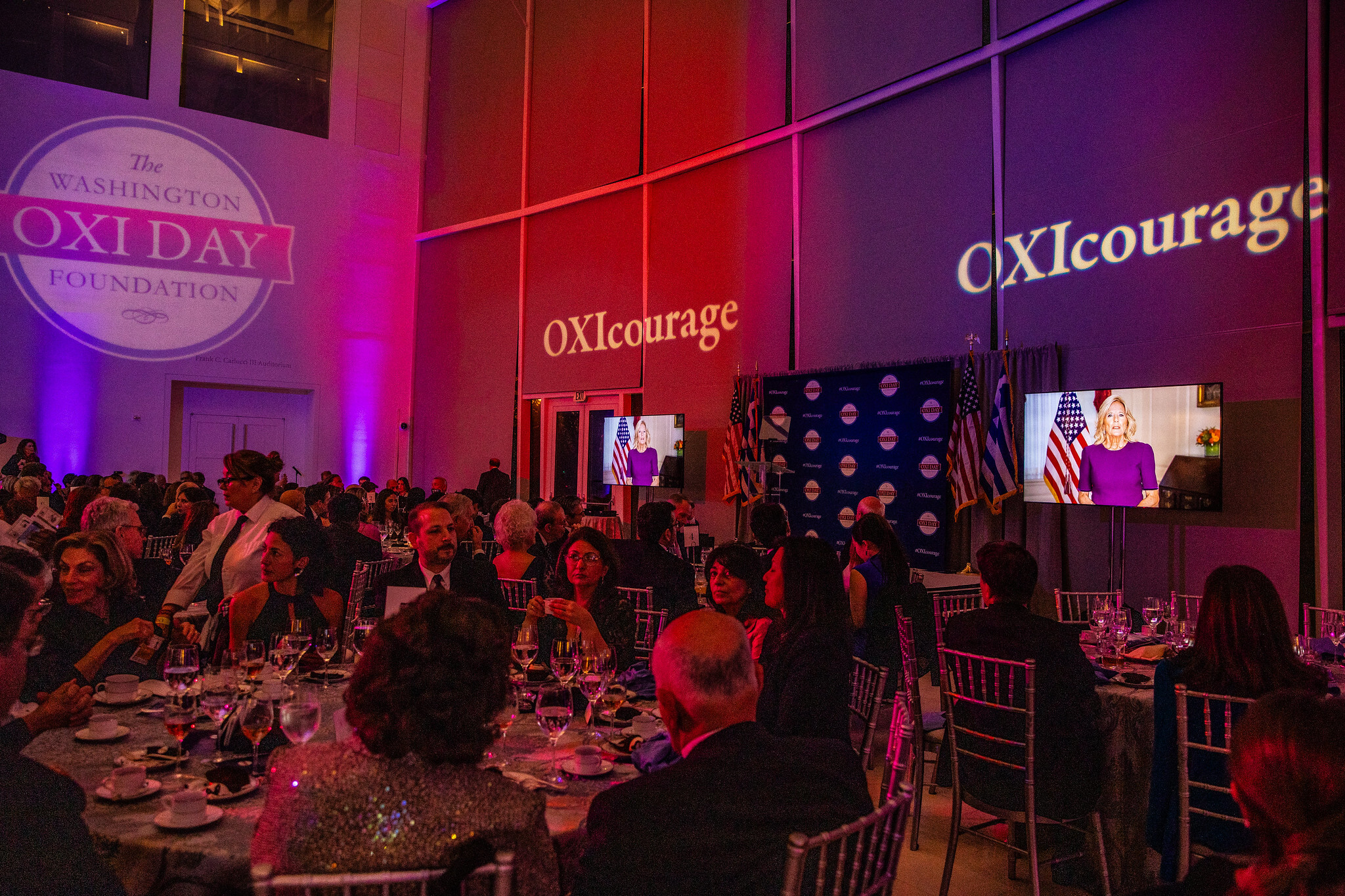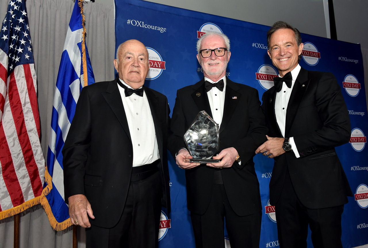 Those gathered also witnessed the launch of the exciting, next chapter of the OXI Courage Awards: the “It Takes Courage” movement. The inspirational celebration of courage once a year at the Courage Awards in DC, will now be shared every day, everywhere. The launch video was introduced by Washington Oxi Day Foundation Advisory Board Member and branding legend Peter Economides.