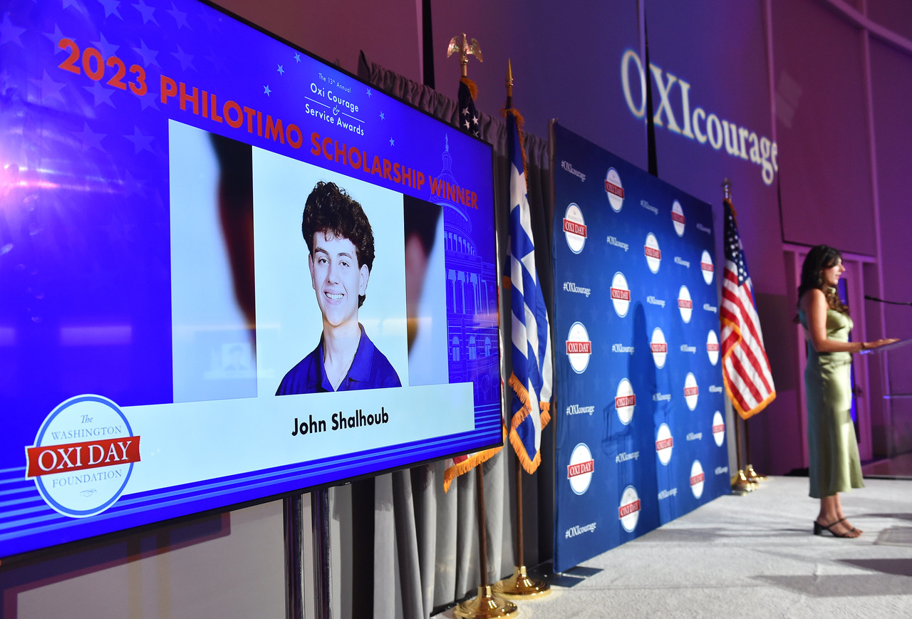 Chloe Lambrinidou of Libra Philanthropies presented the winner of the Philotimo Scholarship Competition. This year's first place essay was submitted by John Shalhoub.